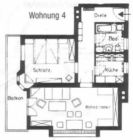 Schlafzimmer mit Doppelbett, Bad mit Waschmaschine, Küche mit