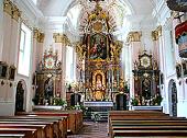 Das zeigt nicht nur der kunstvolle Stuck des späten Rokoko, auch der dreigeschossige Hochaltar, ganz aus Holz gearbeitet, entstand aus dem Denken der Zeit um 1730-50 |